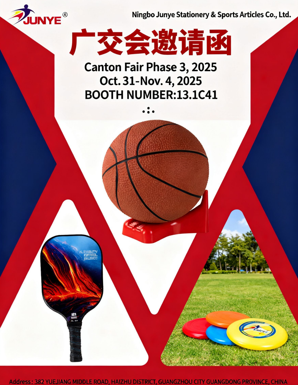 寧波俊業ステーショナリー&スポーツ用品有限公司 展示名:広州交易会 第3フェーズ、2025 展示期間:2025年10月31日~11月4日 ブース番号:13.1C41 住所:広州市海珠区粵江中路382番地 海珠区、広州市 中国広東省