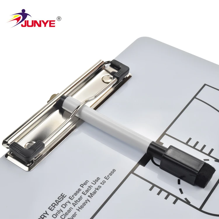 Dry-erase football coaching board with strong clip and easy wipe-off surface